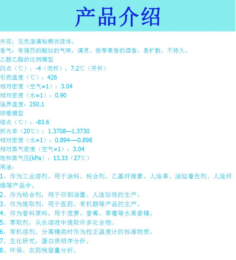 1、作为工业溶剂,用于涂料、粘合剂、乙基纤维素、人造革、油毡着色剂、人造纤维等产品中。